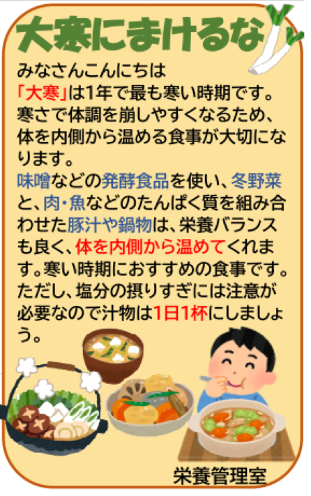 *都合により献立を変更させて頂くことがありますので、ご了承下さい。